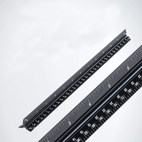 Escala de aluminio negro para ingenieros, regla Triangular