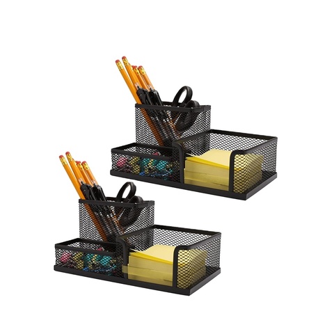 Organizador de escritorio de malla, tres compartimentos, negro, con portalápices y cestas de almacenamiento