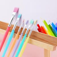 ชุดแปรงทาสี 6 ชิ้น สีลูกกวาด ขนแปรงไนลอนสีสันสดใส สำหรับสีน้ำมัน สีน้ำ สี gouache ปลอดสารพิษ อุปกรณ์ศิลปะ