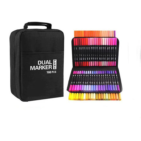 Bview Art 168 สีเคล็ดลับแปรงคู่เครื่องหมายเคล็ดลับเครื่องหมายศิลปะสําหรับศิลปินระบายสีตัวอักษรร่าง